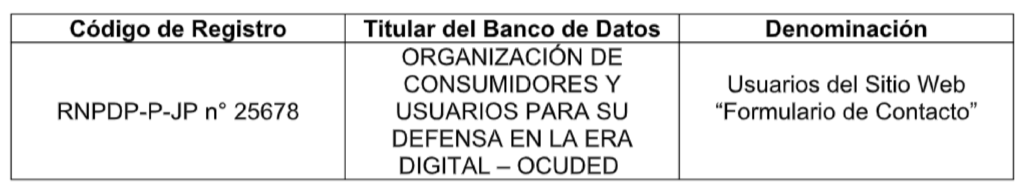 OCUDED se encuentra constituida bajo la razón social ORGANIZACIÓN DE CONSUMIDORES Y USUARIOS PARA SU DEFENSA EN LA ERA DIGITAL,